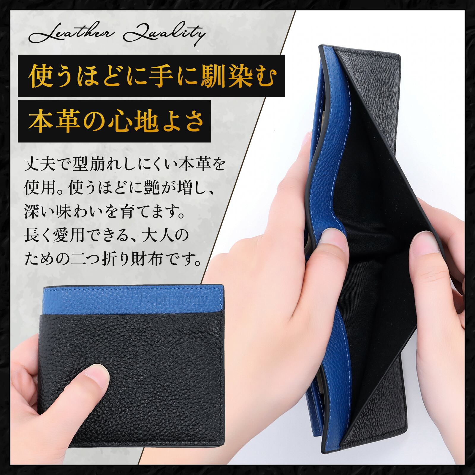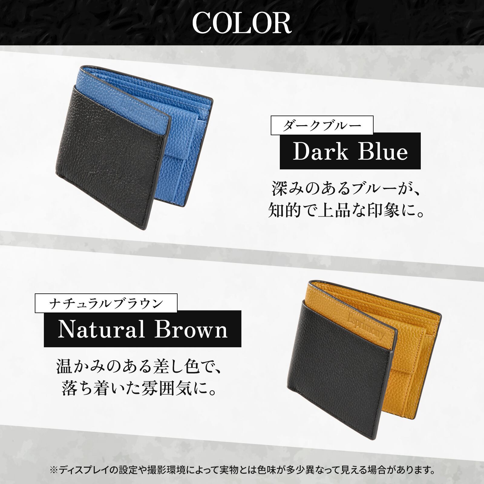 [Esprimony] colors シリーズ 本革 メンズ バイカラー二つ折り財布